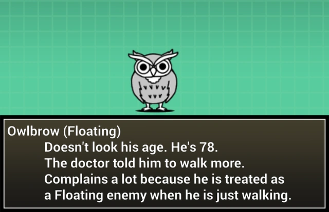 Этот враг похож на Мотылька, хотя Бровастый филин дает меньше денег при победе по сравнению с Мотыльком. Имеет умеренный Хп.