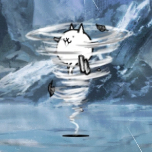 In Cats in the Snow, this unit can act as a shield against the Snowball as they have very low HP and range and Catornado has a godly attack rate, effectively destroying all incoming Snowballs before getting hit.