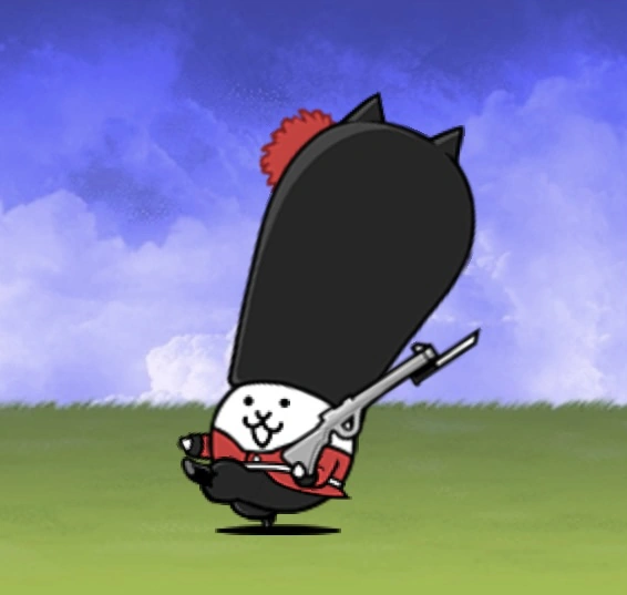 - True Form: The cat has transformed into a British guard, holding a musket with a bayonet. Walks and attacks the same.