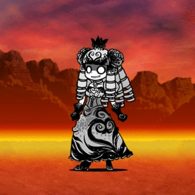 - Normal Form: Kerihime, now with white expressionless dots in the place of eyes, completely darkened gloves, legs, heels and crown, alongside various black markings strewn across her hair and dress. Attacks by kicking forwards a dark shockwave of energy.