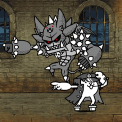 Delinquent Cat has high health, decent range and high DPS, along with the ability to freeze Floating enemies and a multi-hit to increase his activation chance. Adding onto this, because a lot of short-ranged bosses are Floating, Delinquent Cat is useful for a large number of early stages and, when decently leveled, he can take on many of the Cyclone, Bun Bun and Face variants. However, his use is drastically reduced after early-game, as Cameraman Cat stacks replace him for DPS, while Sanzo Cat or Necro-Dancer Cat replace him as anti-Floating crowd-controllers due to their more reliable abilities, shorter cooldown and cheaper cost.