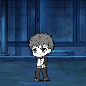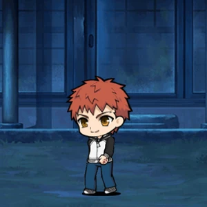 - Evolved form: Shirou Emiya in chibi form, wearing his favorite jersey over his casual clothes. On his left hand is his command spells binding him to Saber. Attacks using a traced copy of Archer's twin-swords, the black Kanshou and the white Bakuya, which fades after each attack.