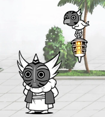 - Normal Form: What seems to be an older cat wearing robes with spiky, protruding hair. His mask is similar to Ururun Wolf's and Masked Yulala's, A.K.A a horned, tribal mask. Beside him is a cockatoo with a mask on, holding a lantern.