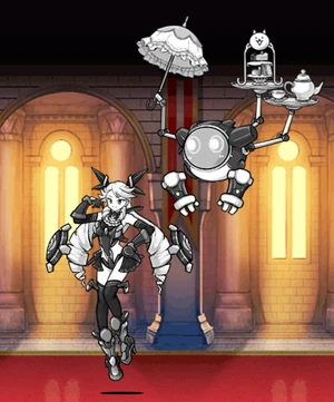 | A naive bourgeois girl. Her out-of-place comments baffle the people around her but her butler quickly follows up. Nullifies attacks from Traitless enemies, and creates waves. | ||||||||