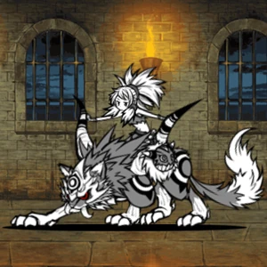Ururun Wolf is one of the the first free Cat Units to have an ability that targets Traitless enemies, but due to the low knockback chance she is more used for general DPS than for crowd-control. She has almost as much range as Bahamut Cat, so she can outrange Le'boin and all of his common variants and may also push them away. There are also occasions where her knockback ability can backfire, such as against Idi:Re.