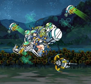 | Her hair sometimes gets sucked into her mecha. Fires her Vacuum Cannon Mk 2 from long distance to deal massive Area Attack damage to Floating. | ||||||||