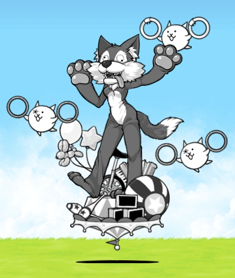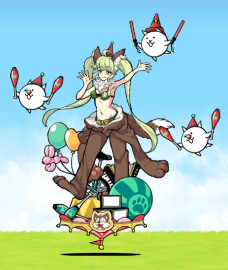 - Evolved Form: Now in full color, Deale appears to have taken off half of the wolf costume, exposing her upper half. She appears to have twintails. The two main cats get pointy hats, clown makeup, and juggling pins to replace the hula hoops, while the odd cat out is wearing a traffic cone and is wielding air traffic controller sticks. The miniature circus she's standing on becomes more detailed.